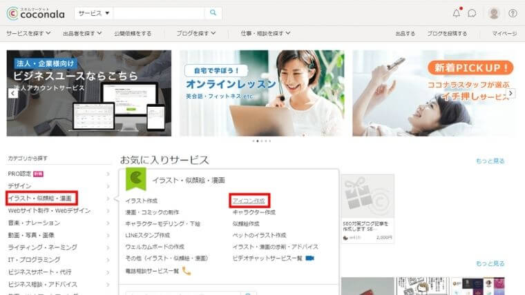 ブログのアイコンを作成する一押しは「ココナラ」で依頼する方法です。